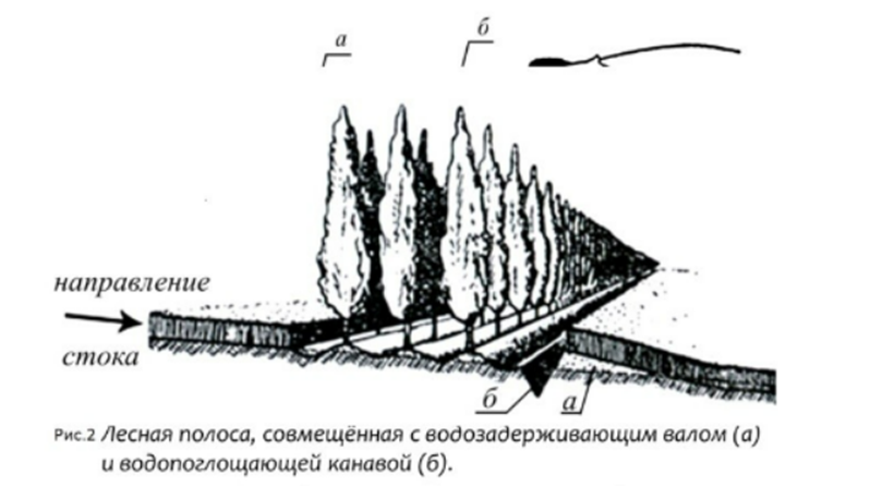 Восстановление гидрологического режима через контурно-полосную организацию территории и создание валоканав.