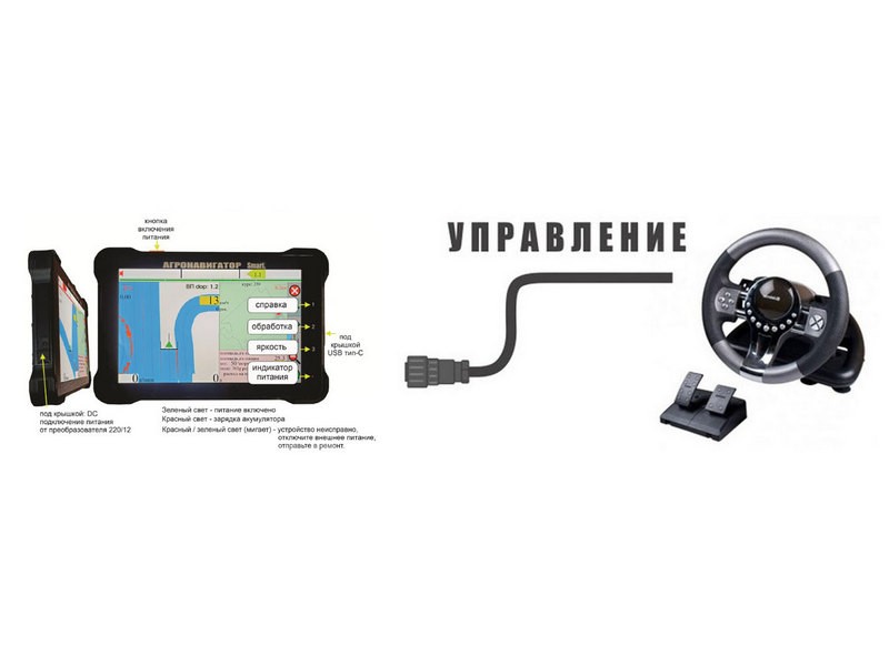 Навигационный комплекс (НК) / Бортовой компьютер (БК) «Агронавигатор» можно перевести в специальный режим работы «Тренажер-симулятор», который совместно с игровым рулем и педалями, дает возможность провести обучение водителя технологии параллельного вождения и внесения материалов вне трактора, полностью исключив затраты хозяйства на авто, ГСМ и амортизацию техники.
