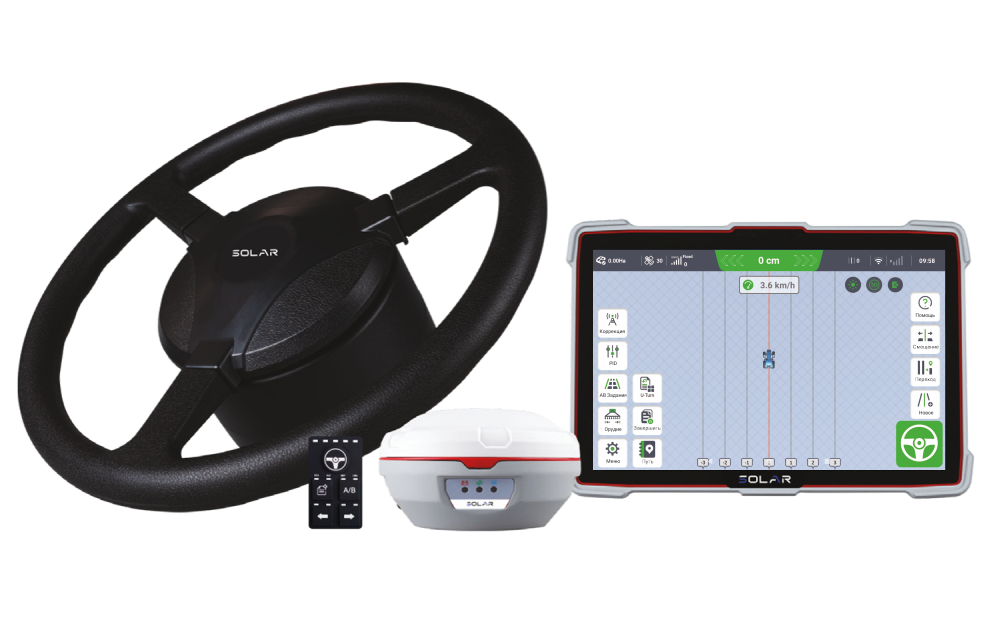 - Электрический автопилот, в котором используется рулевое колесо с управляемым двигателем с высоким крутящим моментом. с точностью РТК(2,5 см). Подходит для различных тракторов, комбайнов, опрыскивателей и другой с/х техники. Планшет T100 GNSS С понятным программным обеспечением. Модем 4G, Bluetooth и WIFI идеально подходят для подключения к CORS или загрузки рабочей информации в цифровую ферму. 10,1-дюймовый экран с многоязычным программным обеспечением и понятным графическим интерфейсом подходит для выполнения всех распространенных сельскохозяйственных операций. Может быть использован как курсоуказатель. Многофункциональный высокоточный приемник GNSS R70 Расширенные встроенные возможности подключения, включая несколько портов CAN, последовательные порты, Bluetooth, модем 4G и даже встроенный радиомодем UHF. Работа с источниками поправок RTK от сетей или УКВ радиостанций. Преимущества: Автопилот способен работать как на сверхнизкой скорости (0,5 км/ч), так и на высокой (до 25 км/ч) Ударопрочный и влагозащищённый корпус Компенсация крена трактора в 4-х плоскостях. Накладка на руль с Bluetooth кнопками Простота в использовании. Возможность установки на любой вид техники. Повторяемая точность Возможность приёма поправок RTK как через Интернет (важно: необходимо устойчивое интернет-соединение в полях), так и по радиосвязи.Планшет T100 GNSS