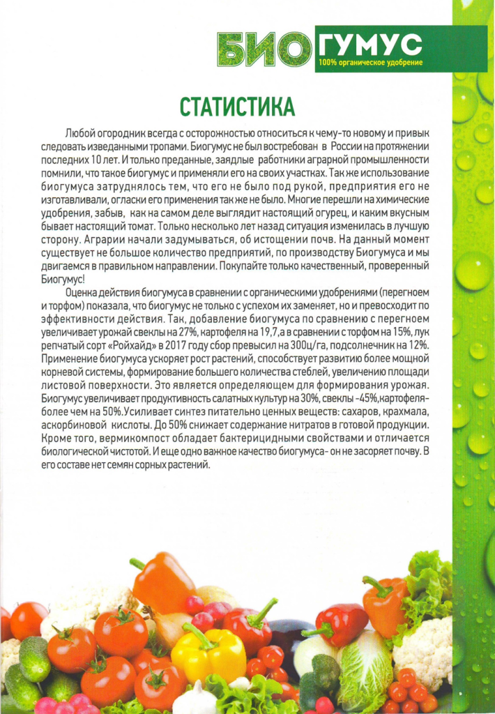 Экстракт биогумуса позволяет производить высококачественную и экологически чистую сельскохозяйственную продукцию и снижать потери при ее хранении.